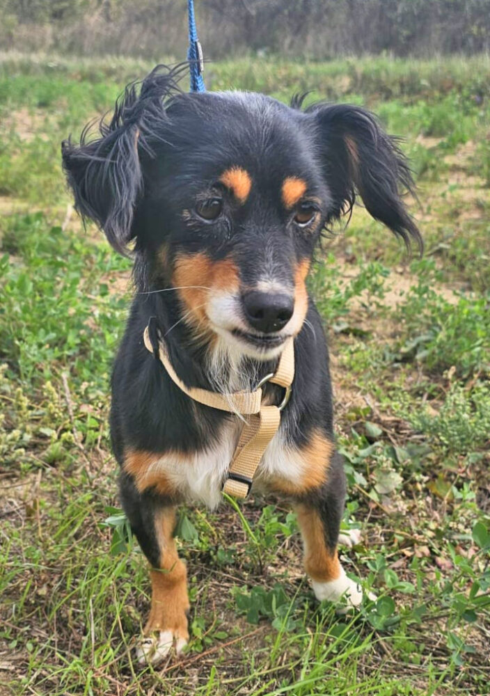 Die kleine niedliche Hündin ist allen gegenüber freundlich und lieb. Sie ist sehr bescheiden und benimmt sich im Tierheim sehr brav. Sie geht schon recht gut an der Leine und versteht sich gut mit den anderen Hunden. Es ist unbegreiflich, dass sie ausgesetzt wurde. Sie hätte allein nicht lange überlebt.