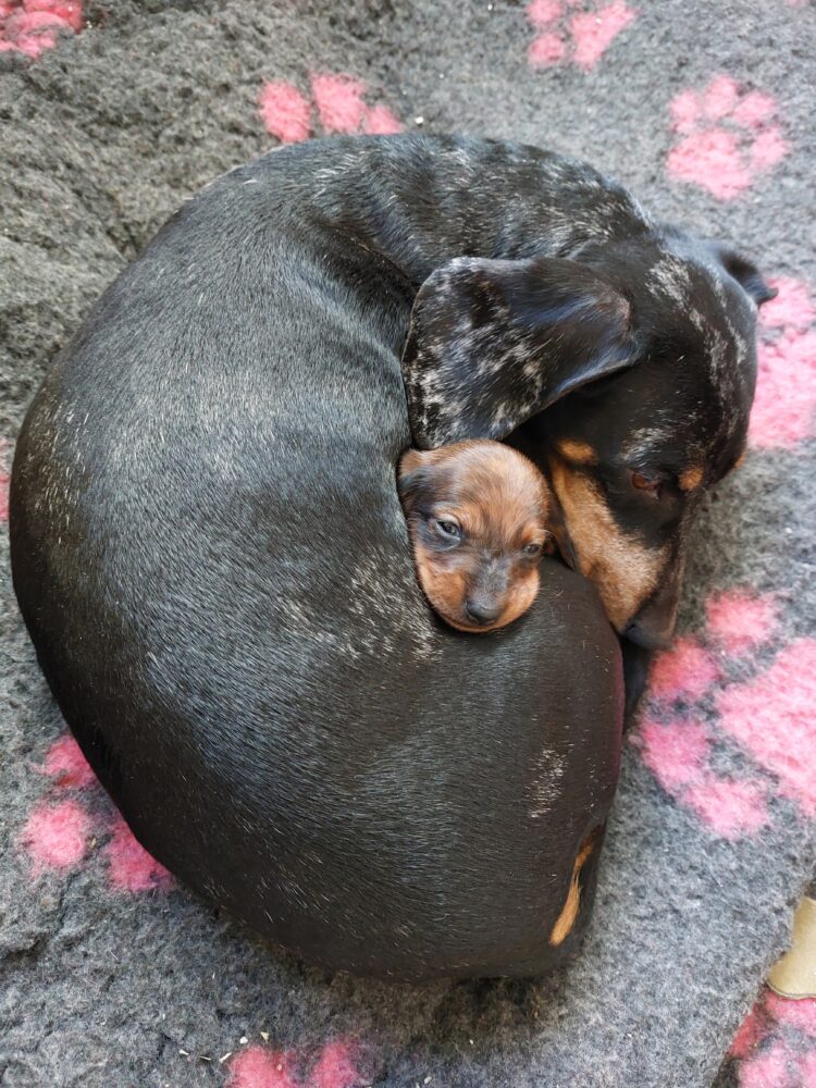 Irma ist am 19.08.2025 als Einzelkind geboren. Sie ist eine selbstbewusste, lebhafte Standard-Hündin in rot gefleckt (rottiger) gestromt. Irma wächst…
