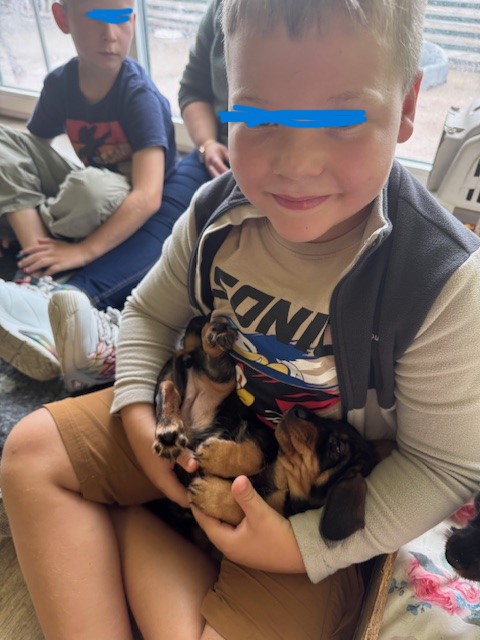 Die Welpen dürfen gerne öfter besucht werden um ihre neue Familie schon kennenzulernen.
